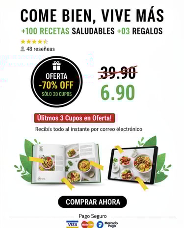 Al acceder hoy a COME BIEN VIVE MÁS, recibirás: